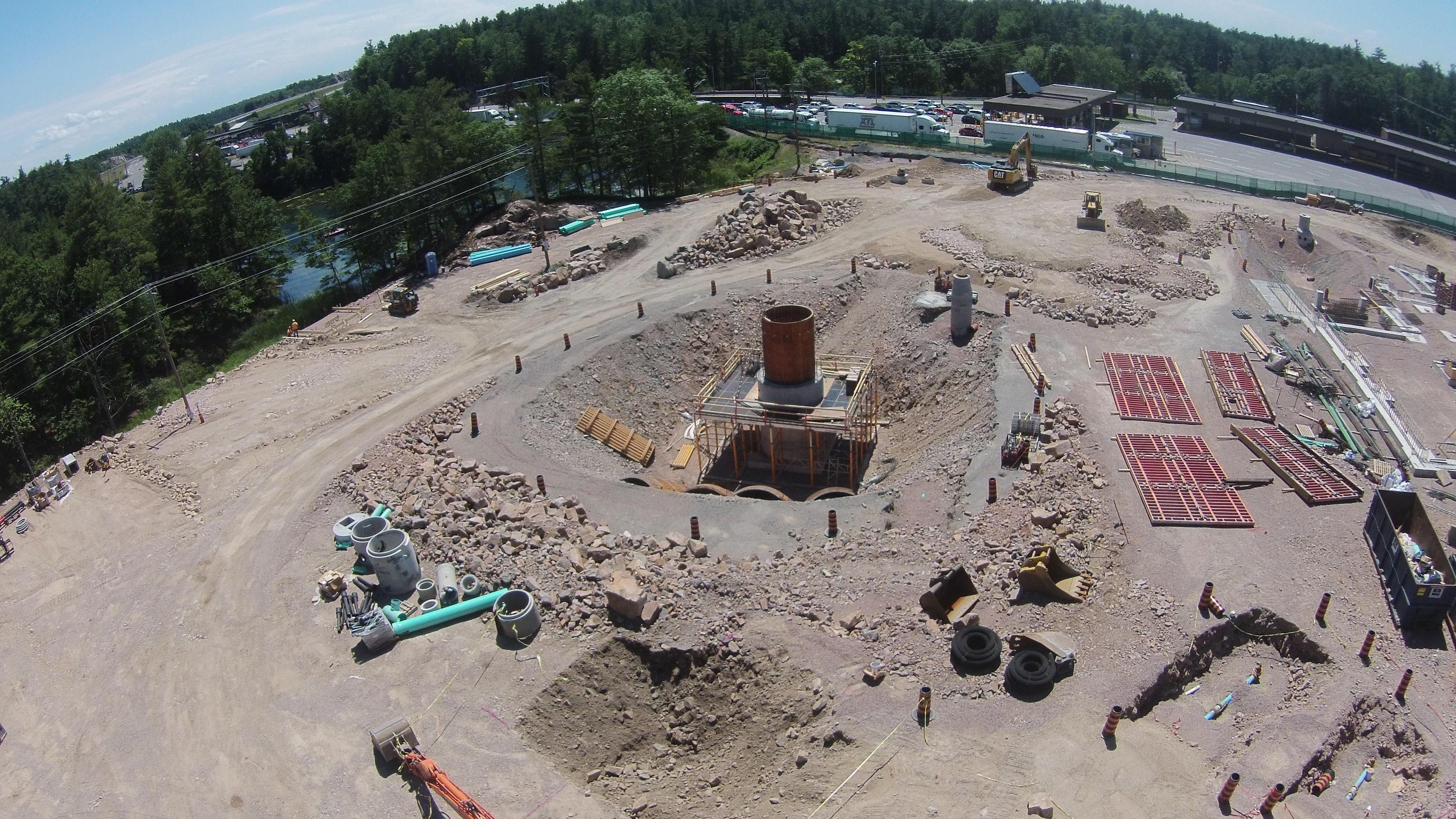 - Vue aérienne de l’usine de traitement des eaux usées au Projet de réhabilitation des installations douanières canadiennes de Lansdowne